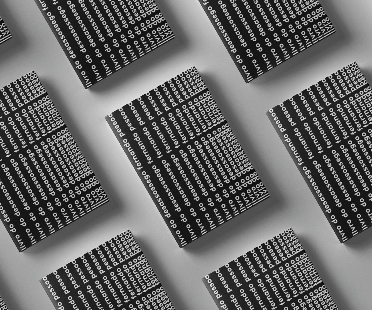 Experimentação tipográfica do "Livro do Desassossego", de Fernando Pessoa. Trata-se do projeto final da disciplina de Tipografia do curso de Pós-Graduação em Design Gráfico do SENAC, realizado em coletivo. A proposta consistiu em investigar a função simbólica, expressiva e associativa da tipografia, na qual a forma do tipo e da página enfatizam o potencial visual do texto, afirmando e expandindo seu conteúdo.